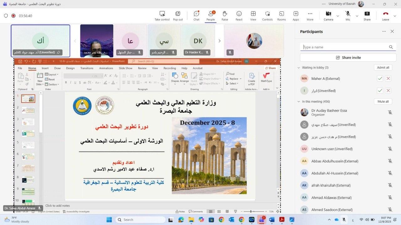 نظم مركز ابن سينا للتعليم الالكتروني دورة تطويرية عن اساسيات البحث العلمي بمشاركة رئيس جامعة البصرة و وكيل الوزارة للشؤون العلمية الدكتور حيدر عبد ضهد عبر الاتصال المرئي.