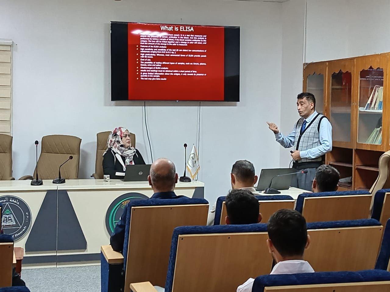 وتضمنت الدورة، التي قدّمها كل من الدكتور وليد يوسف قاسم والدكتورة هدى فالح سعد، شرحاً لمبادئ عمل جهاز ELISA وأهم الفحوصات التي يوفرها في تحليل العينات.