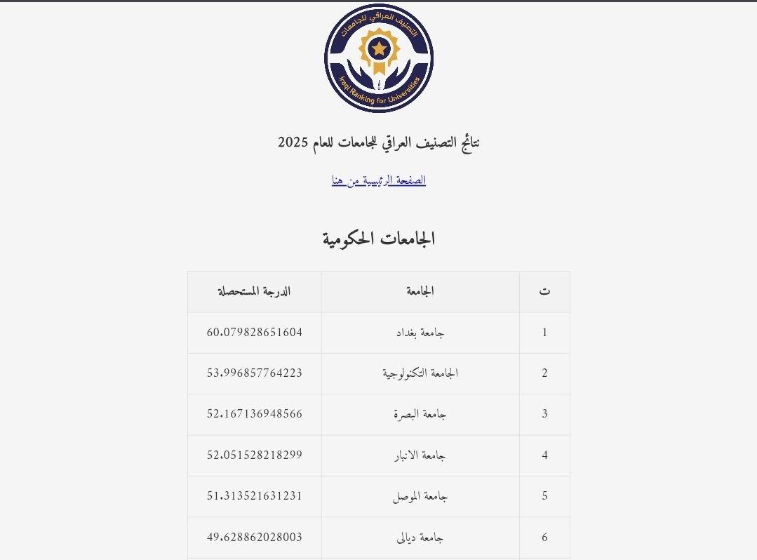 حصلت جامعة البصرة على المرتبة الثالثة في التصنيف العراقي للجامعات، والذي أنجزه جهاز الإشراف والتقويم العلمي في وزارة التعليم العالي والبحث العلمي لعام 2025.