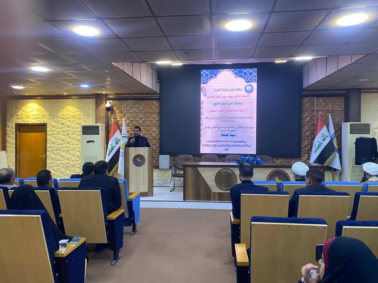 اقام المركز الثقافي في جامعة البصرة وبالتعاون مع مركز التعليم المستمر والفريق الجامعي الطلابي مهرجانها الشعري السنوي إحتفاءً بولادة الامام علي بن ابي طالب عليه السلام وسط حضور كبير للشخصيات الدينية والأكاديمية والثقافية وجمع غفير من المهتمين بالشأن الثقافي والفكري.