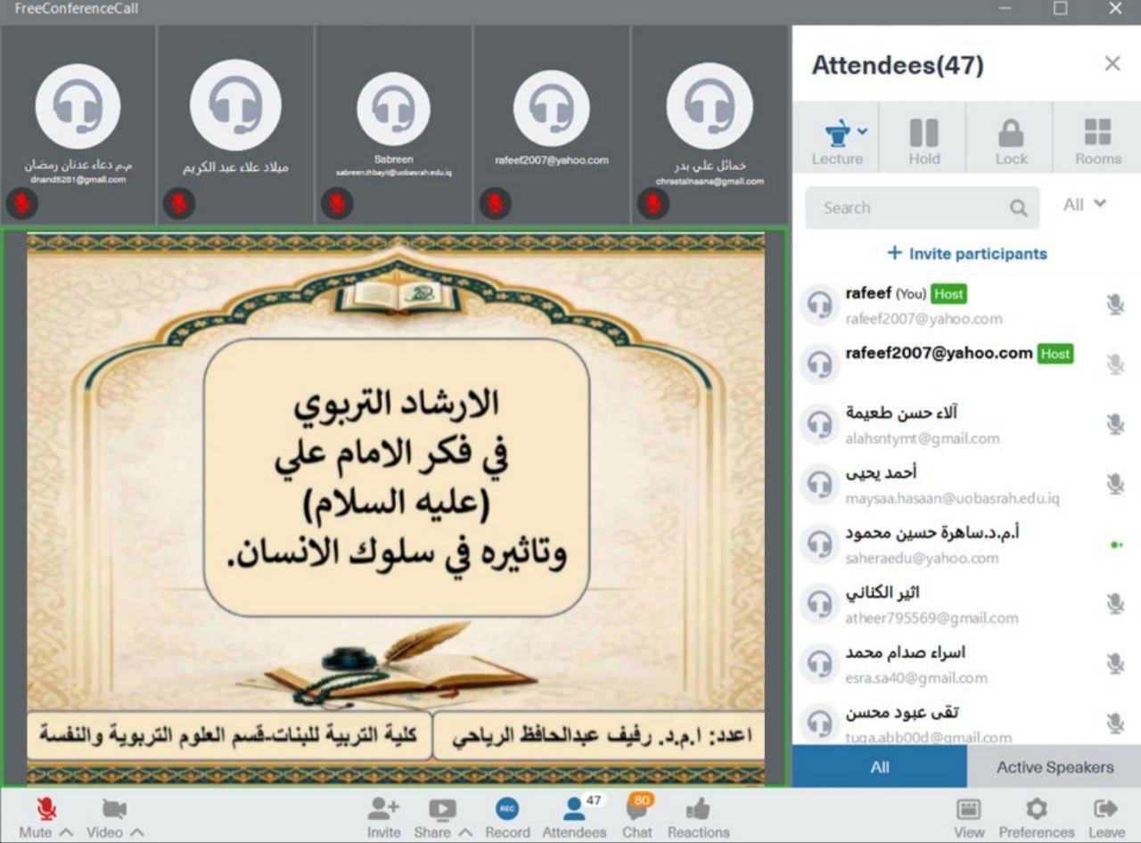 جامعة البصرة تقيم ندوة إلكترونية عن الإرشاد التربوي في فكر الإمام علي (عليه السلام)