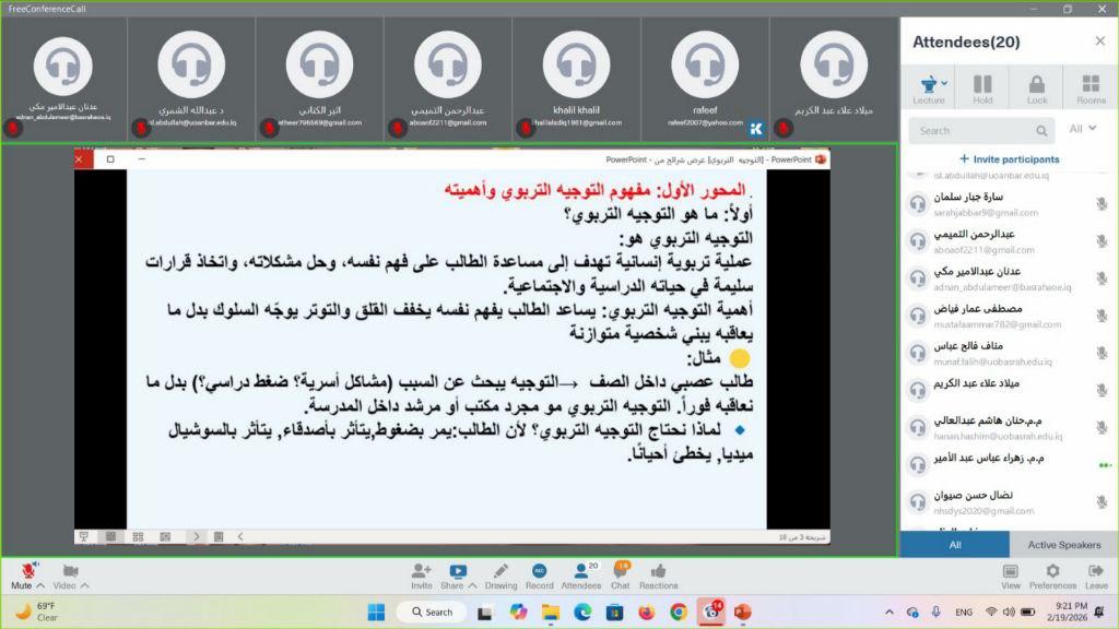 جامعة البصرة تقيم ورشة إلكترونية عن فن التحدث والإقناع بمنظور اللغة العربية