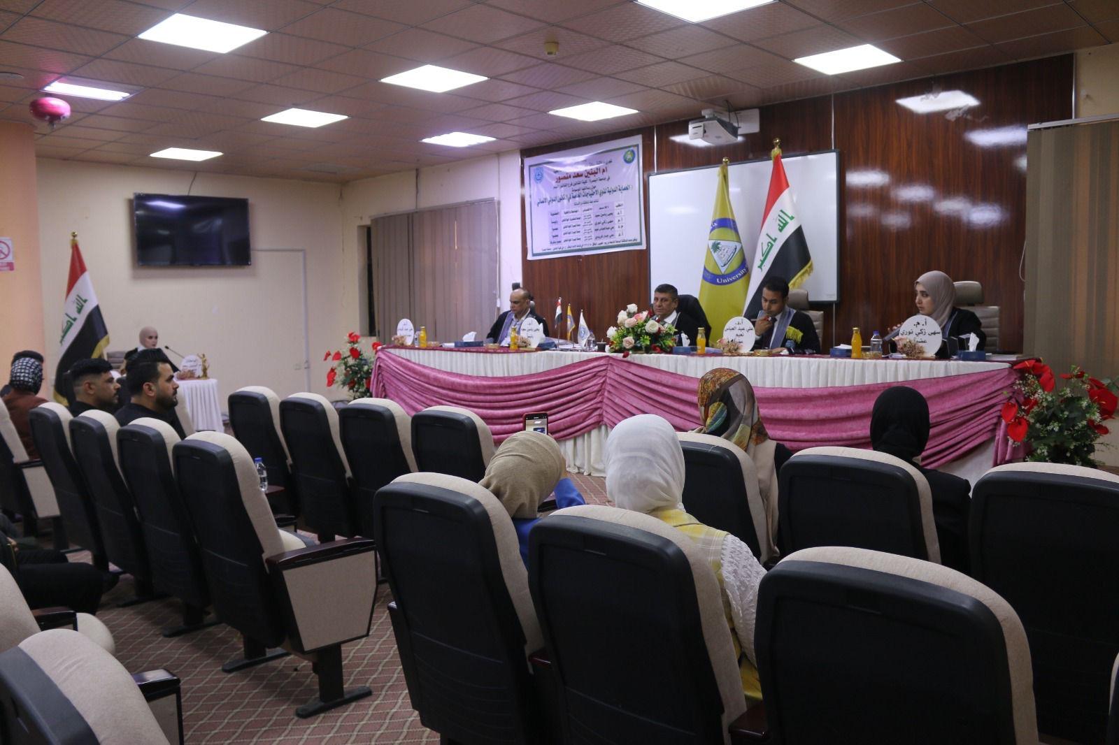 ناقشت رسالة ماجستير في كلية القانون في جامعة البصرة الحماية الدولية لذوي الاحتياجات الخاصة في القانون الدولي الانساني.