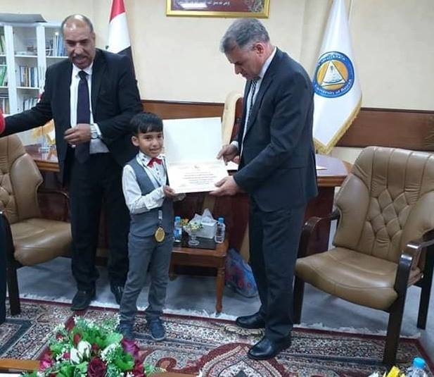 جامعة البصرة تمنح قلادة الإبداع للطفل الموهوب (محمد الصدر) ...