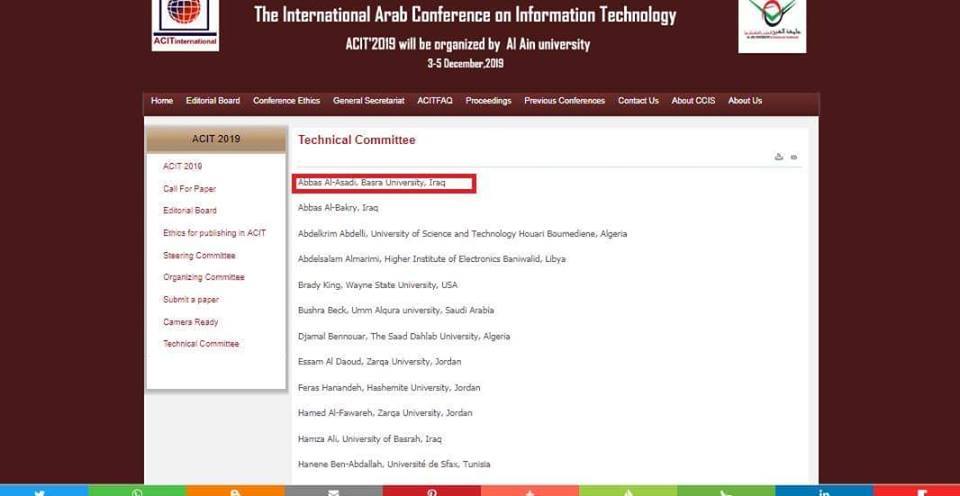 أختيار تدريسي في جامعة البصرة عضواً في المؤتمر العربي الدولي لتكنولوجيا المعلومات في دولة الامارات العربية المتحدة ...