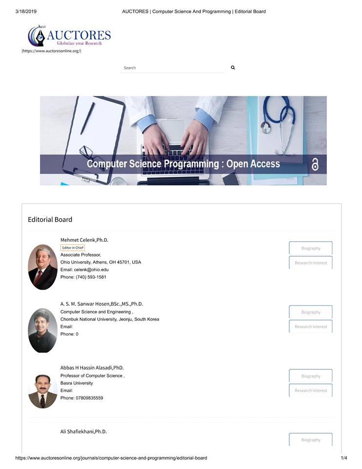 اختيار تدريسي في جامعة البصرة عضواً ومقيماً علمياً بمجلة بحثية امريكية ...