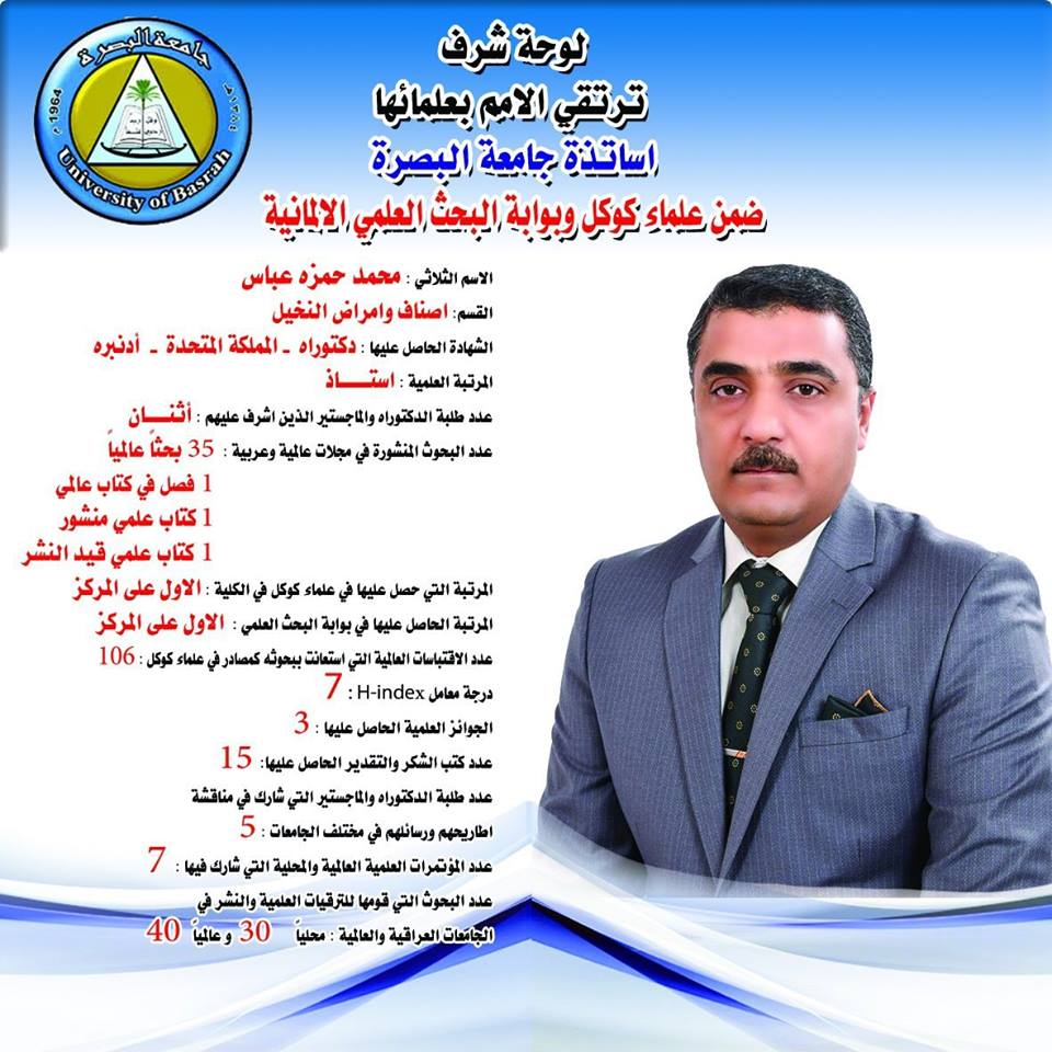 جامعة البصرة تكرم احد أساتذتها ضمن علماء كوكل ...