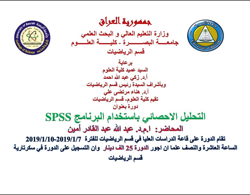 جامعة البصرة تقيم دورة في (التحليل الاحصائي باستخدام البرنامج SPSS) ...