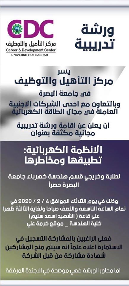 جامعة البصرة تستعد لإقامة ورشة عمل عن الانظمة الكهربائية ...