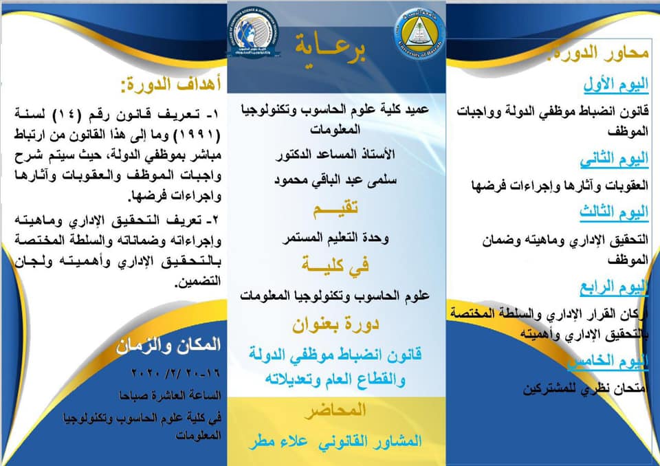 جامعة البصرة تستعد لإقامة دورة عن قانون انضباط موظفي الدولة والقطاع العام ...