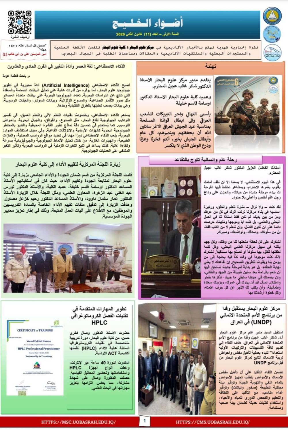 جامعة البصرة تصدر العدد الحادي عشر من نشرة أضواء الخليج...